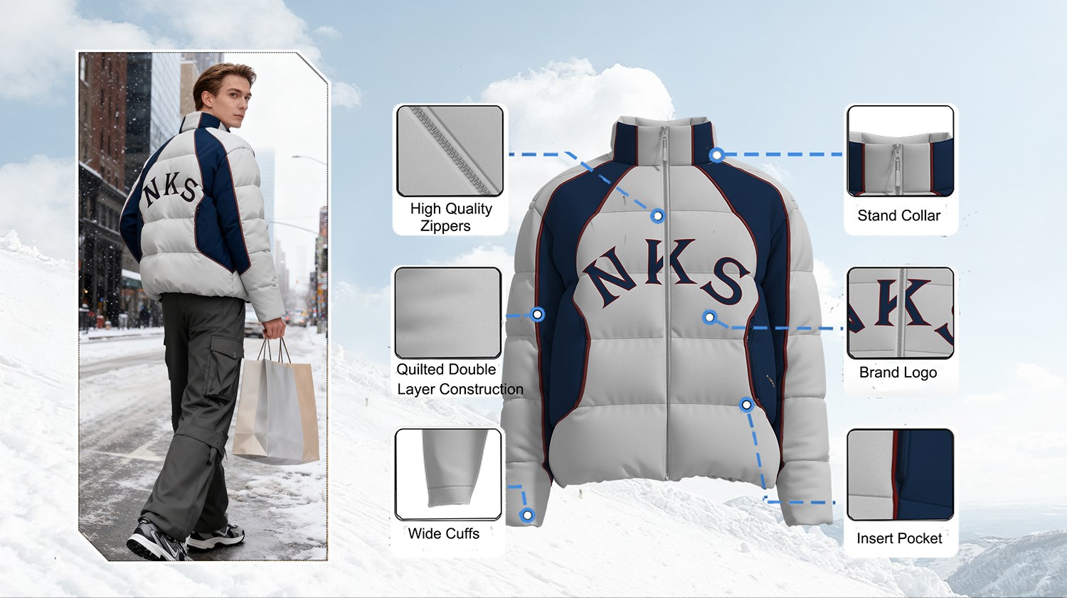 ②Stand Collar Design:The standing collar effectively blocks wind drafts while providing thermal protection for the neck, simultaneously enhancing the overall sleek, modern aesthetic for perfect balance of warmth and style.
