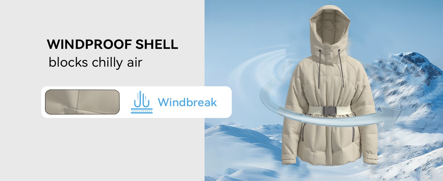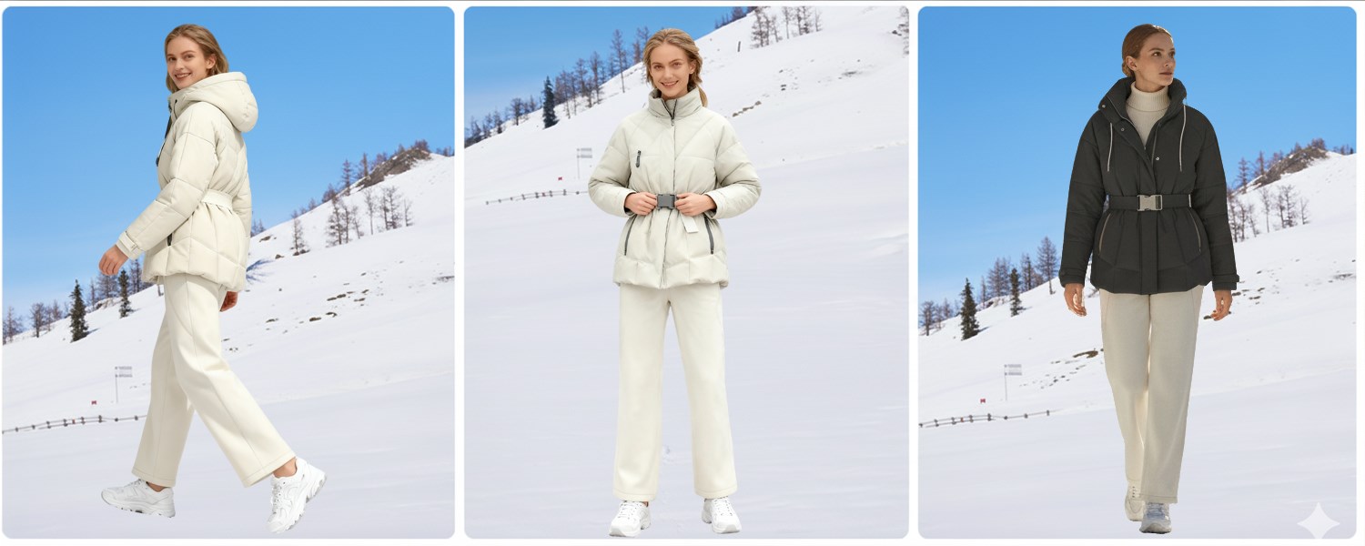 Women Down Jacket Features and Functions: 1.Fabric: ①K-VEST 22010 Composition:52.5% Sorona Agilefabric 33.3% Polyester 14.2%Nylon Fabric Width:140CM 131g/sqm ②K-VEST 23086 30D Aerogel Lining 62g Composition:100%Polyester Fabric Width:150CM 2.Fill:White Duck Down 90/10 3.Stylish Design: ①Waist-Defining Design:Features a wide waistband with cinching functionality that accentuates the waistline, enhances body proportions, and creates a slimming silhouette. It perfectly highlights feminine curves while accommodating diverse body types. ②Hood With Drawstring:Hooded design with drawstring effectively blocks wind, providing warmth and protection for the head. The drawstring allows adjustable tightness for enhanced insulation and style. ③Multiple Zippered Pockets: Equipped with multiple zippered pockets for convenient storage of small items like phones and keys, improving practicality and meeting daily carrying needs. ④Enhanced Thermal Performance:The plush fill construction effectively traps body heat to deliver reliable insulation, offering strong protection against winter chill while ensuring warmth and comfort in cold conditions. 4:Multiple Color:Various colours available This down jacket fully utilizes the ultra-lightweight and superior warmth of white duck down filling to bring you ultimate warmth. This high-performance down jacket, designed specifically for men, perfectly meets the warmth needs of various outdoor climates (from mild to frigid), creating a comfortable and close-fitting wearing experience, allowing you to feel warm and protected in spring, autumn, and winter.